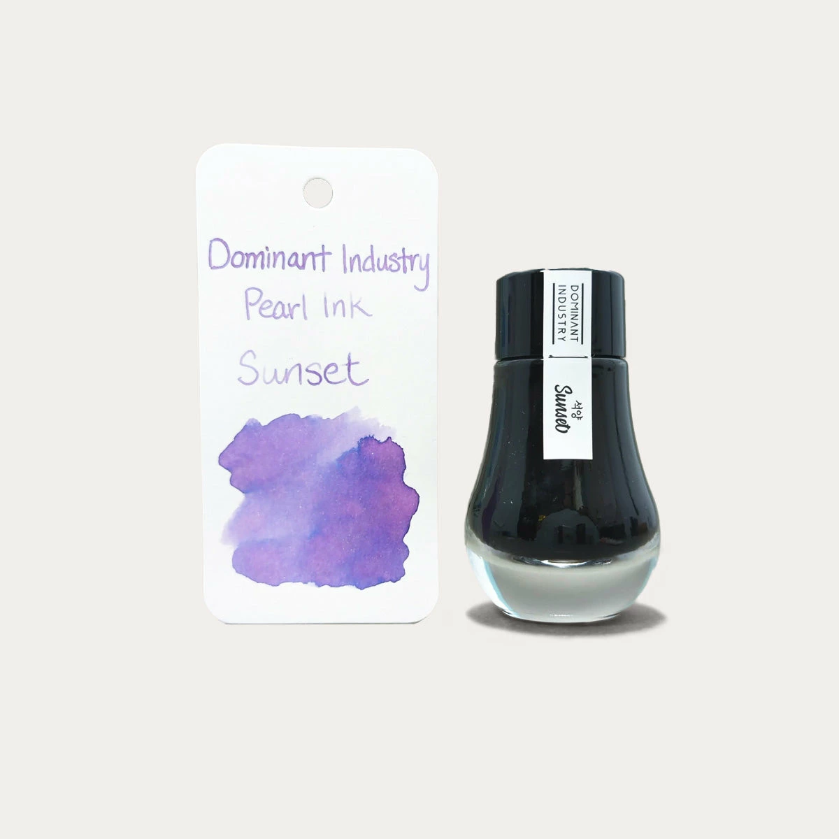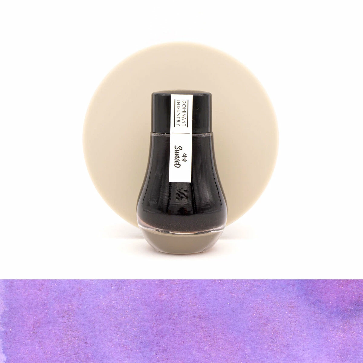 Korean Dominant Industry inks come in lightbulb-shaped glass bottles, reflecting the brand’s goal of capturing light in their ink colors. The ink inside is as great as the bottles are eye-catching. Sunset is part of their Pearl Series of shimmering, pearlescent inks. It’s a soft lavender color with a blue sheen and pearly golden finish.
