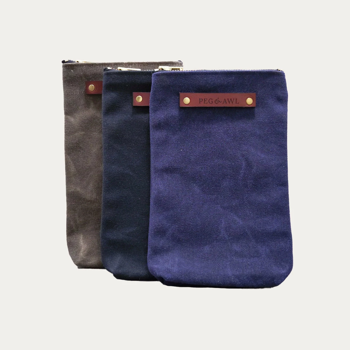 This handsome pouch is made from sturdy waxed canvas and will hold plenty of tools for writing, drawing, and scribbling. Its generous size will let you carry your tallest writing utensils and even tuck away a little notebook.