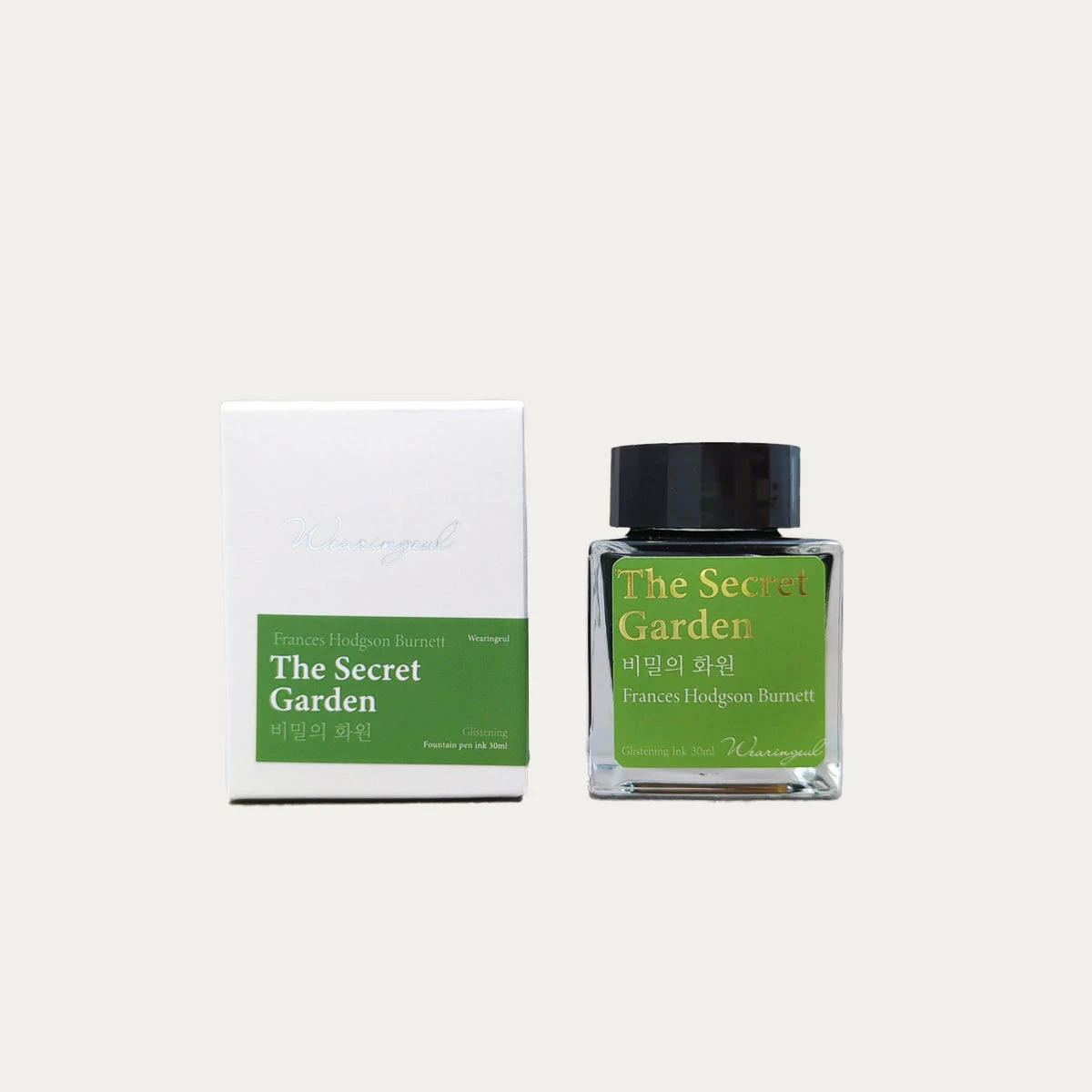 Their Secret Garden ink is based on the book by Frances Hodgson Burnett. The color is an illustration of the secret garden tended by Mary and Dickon: a lush, verdant green color with gold and rose glimmer on top, like flowers blooming in the garden.