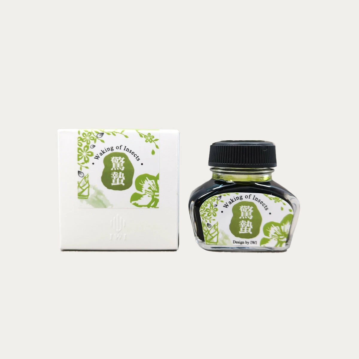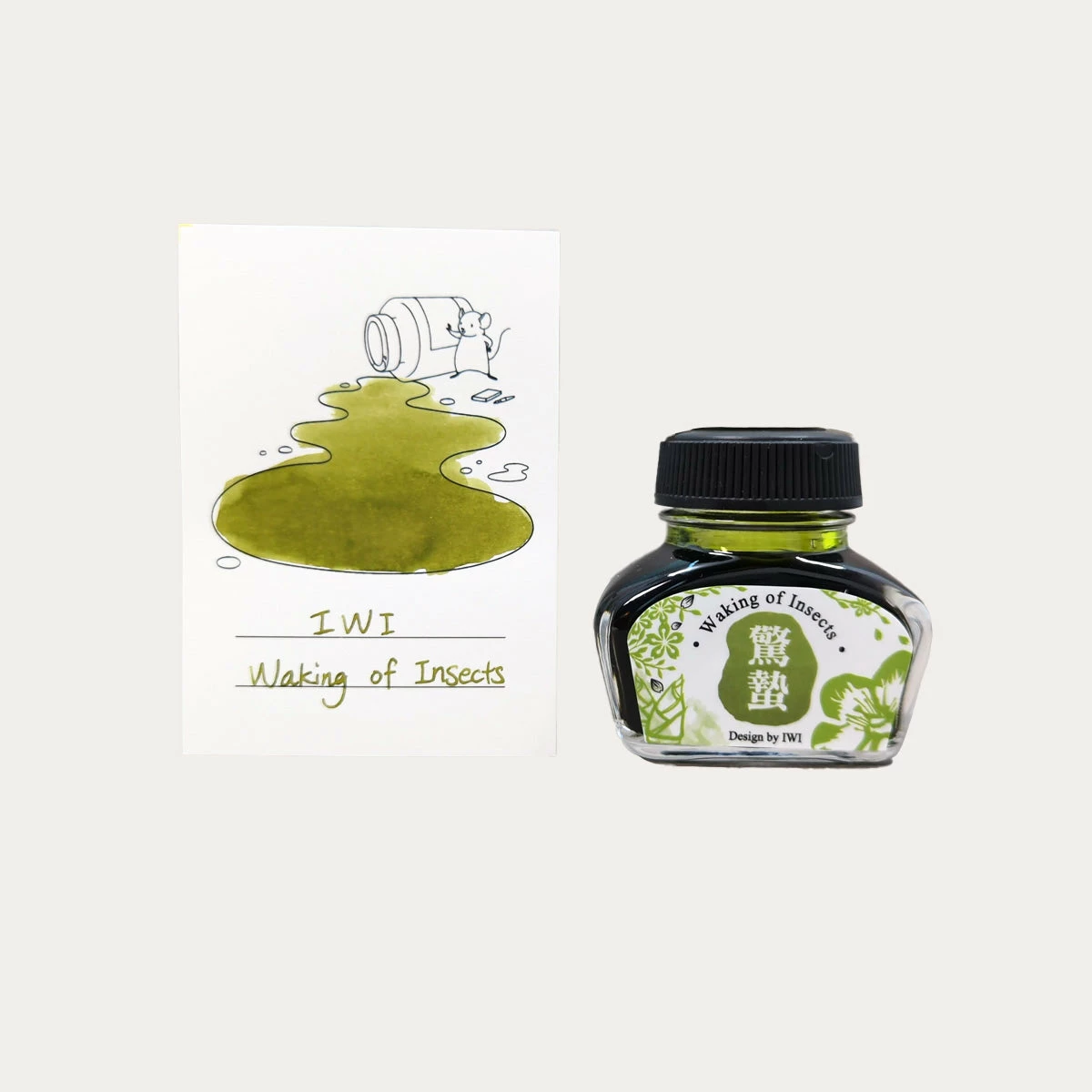 The Color of Nature series of inks from Taiwanese ink maker IWI represents the cycle of changing seasons. The Waking of Insects ink is a springy olive green color with medium shading.