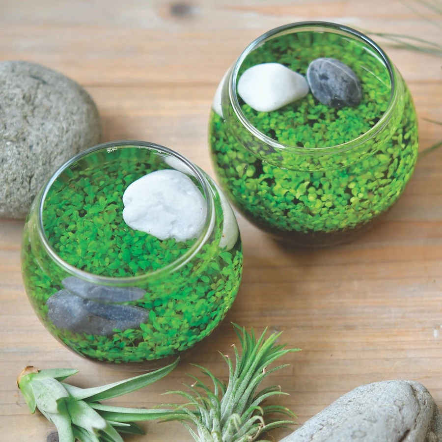 This miniature water garden is a tiny tranquil oasis for your desk or windowsill. Just add water, and the tropical plant seeds inside will begin to carpet the rich volcanic gravel with lush green sprouts that will brighten your day.