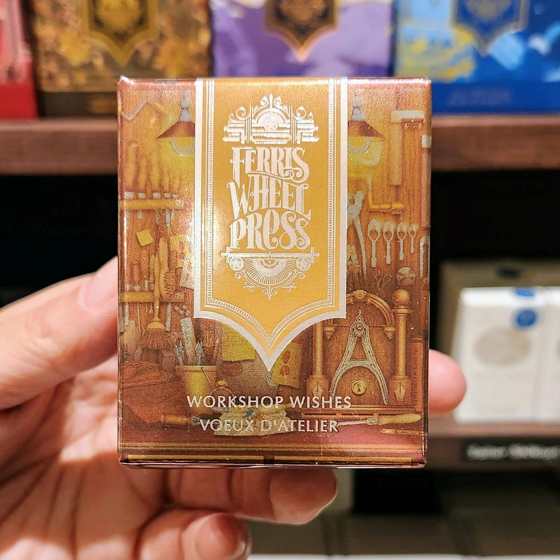 Ferris Wheel Press’s FerriTales ink collection springs to life from the pages of our favorite storybooks. Workshop Wishes is inspired by the warmth of Geppetto’s workshop in Pinocchio. It’s a rich brown that hints of wood shavings and warm light with the silvery shimmer of magic and invention.